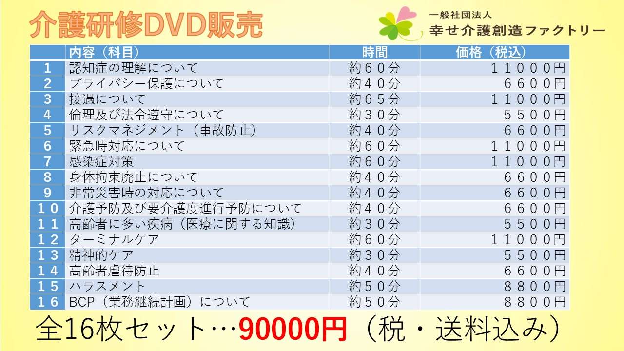 研修を定期的に実施しようと思うと、準備や計画など負担が大きいです。特に、研修を任されるスタッフの負担は想像以上です。そこで、その研修負担の軽減をお手伝いしたいと、当法人では従業者の為の「高齢者虐待・身体拘束について」の研修を実施致します。