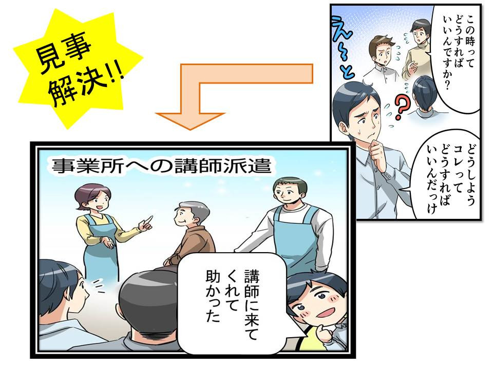トラブルが発生した経験がある、苦情が入ることがある等、それぞれの事業所が抱える様々なお悩みを解決へと導きます。確かな知識を得て介護の負担を減らしていくことは、スタッフの離職対策としても有効ですので、事業所の質を上げたいとお考えでしたら、一般社団法人幸せ介護創造ファクトリーの講師派遣サービスをご利用ください。