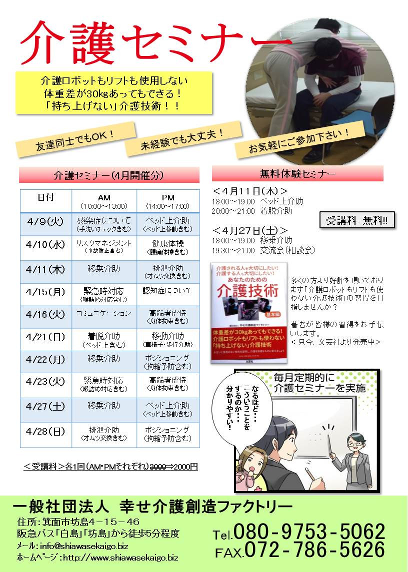 4月15日の認知症セミナーは受講募集を中止致しました。
