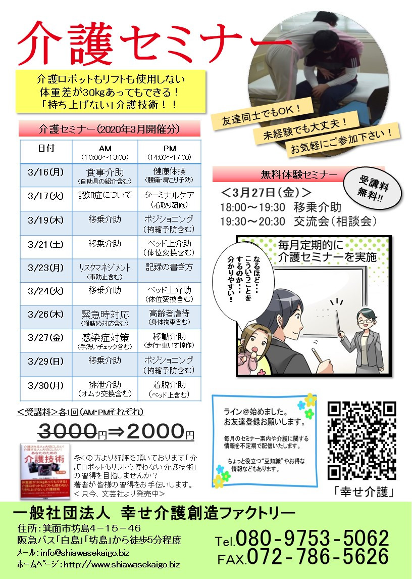 介護(技術)セミナー日程<大阪>2020年3月開催分