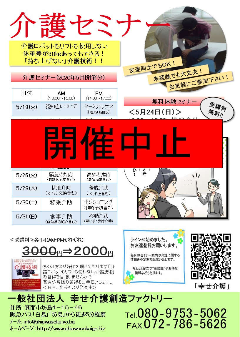 介護(技術)セミナー日程<大阪>2020年5月開催分