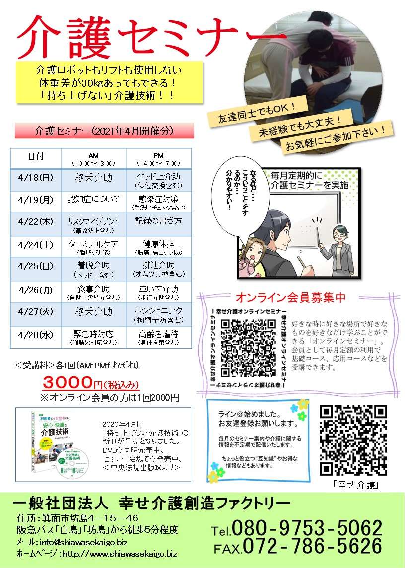介護(技術)セミナー日程<大阪>2021年4月開催分